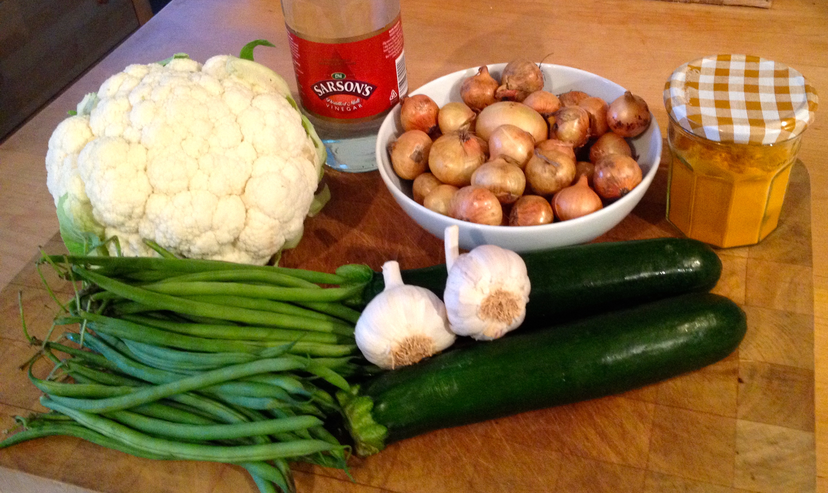 It’s hard to imagine a better accompaniment to a pork pie, cheese and cold meats than a fat spoonful of autumn gold piccalilli! Make it now and it will be good and ready for Christmas. You can buy this pickle in the shops of course but this really is a million times more delicious when it’s homemade. Put it in lovely jars and it makes a great present too. It will keep for six months but some people I know, you know who you are, can’t leave it for six days! It’s not hard to do, quite therapeutic really – here’s what you need!
