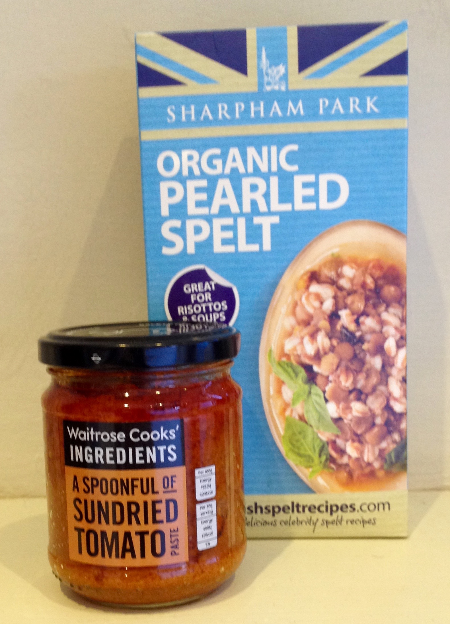 I’ve recently discovered a whole range of organic spelt products. The flour makes fantastic bread and their whole grain pearled spelt is excellent for soups, ‘speltottos’ and my rich tomato salad. A cross between Emmer wheat and Goats grass, spelt has a distinctive, naturally nutty flavour, is easily digestible and avoids the bloat factor often associated with eating highly refined wheat. I’ve pretty much replaced all my standard wheat flour with spelt for bread, pastry and cake making and feel all the better for it. Naturally, it tastes really good too : ). I serve this flavoursome salad as part of a tapas style menu and it goes down a treat. Served with a chopped avocado on the side, it makes a tasty and filling lunch or quick supper. It’s the perfect summer recipe, especially if you grow your own tomatoes and you’re always looking for new and different ways to use them.