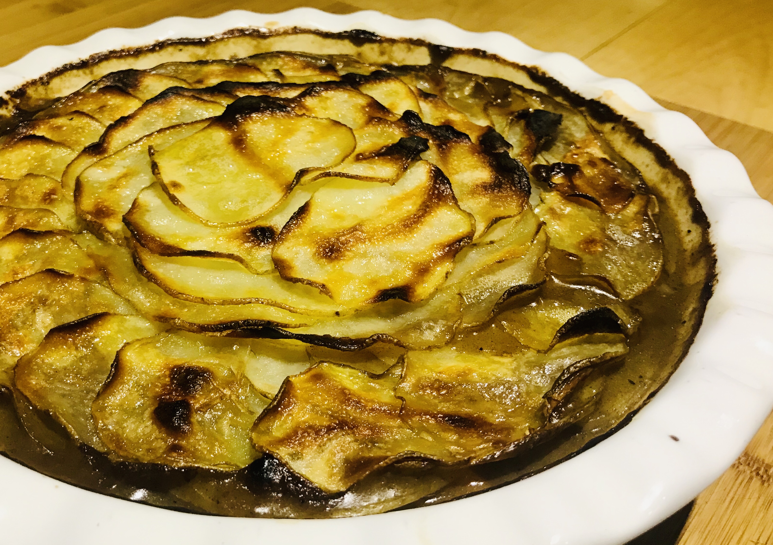 This has to be one of my favourite autumn leftovers dishes. If you cook roast lamb with vegetables like carrot, onion and parsnip on Sunday, make a decent amount so that you can easily make this dish for supper the next day. The leftover lamb and veg are roughly chopped into bite-sized pieces, the gravy mixed with Madras curry spices and topped with these buttered sliced potatoes (mash is also good). Trust me, this is a really tasty supper treat! If I don’t have leftover roast lamb, I have successfully made this from scratch using minced or cubed lamb, freshly sautéed vegetables and spiced gravy made with chicken stock.