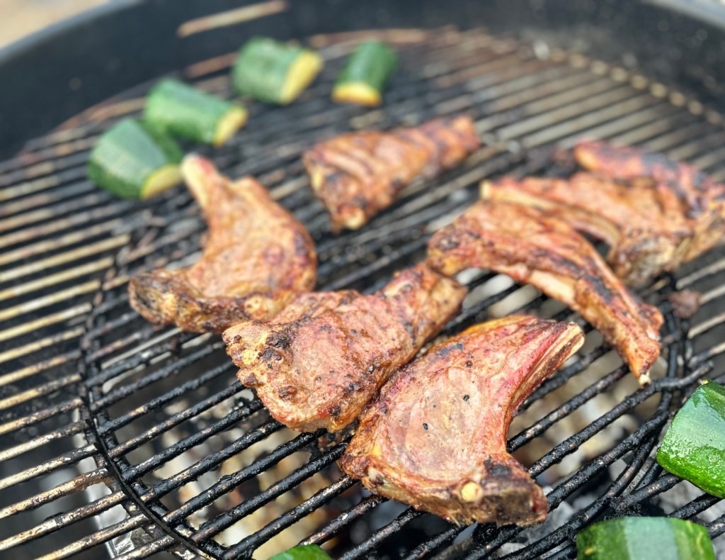 You can grill lamb chops on a gas BBQ but they are by far the nicest when they’re cooked over charcoal. We like them with BBQ chunks of courgettes or aubergine just tossed in some olive oil and gently cooked each side so they char but stay juicy. I’ve given 4 different variations for marinades you can use to ring the changes. A mix of salt, heat, sour and fat delivers flavour – make your own up, it’s pretty easy. For carbs, I like a Turkish pilaf with option 2, fragrant yellow rice with cashew nuts with option 3, boiled new potatoes tossed in mint butter with option 1 or paprika roast potatoes with option 4. Roll on summer!